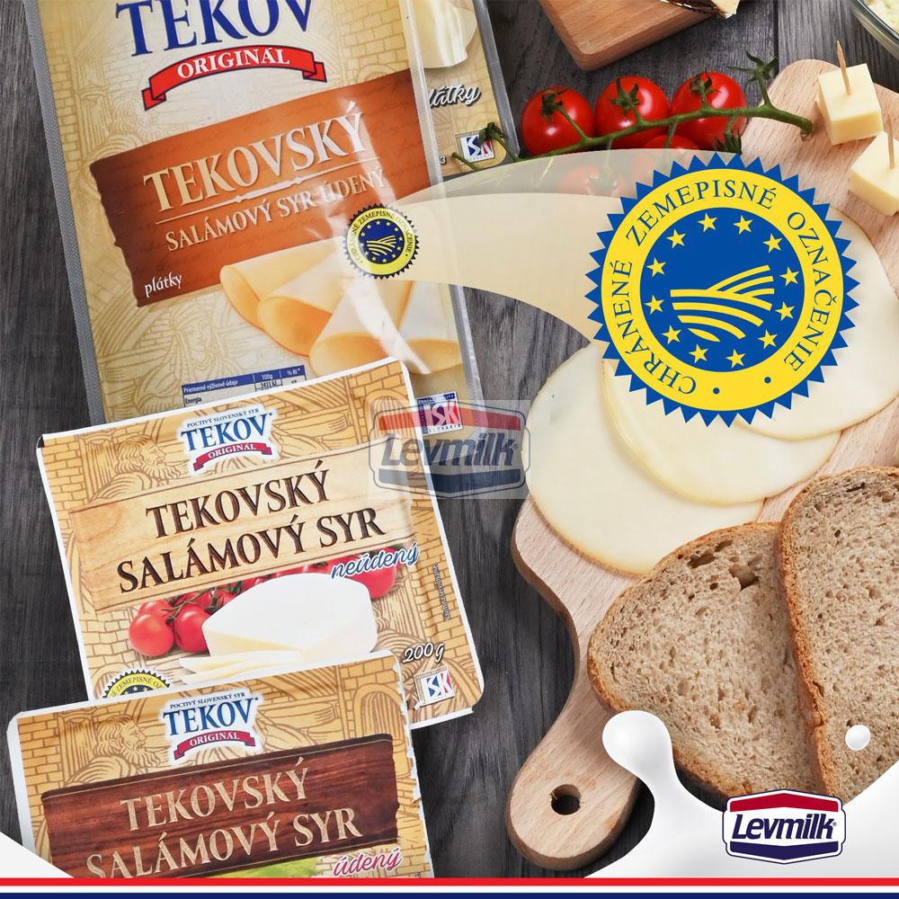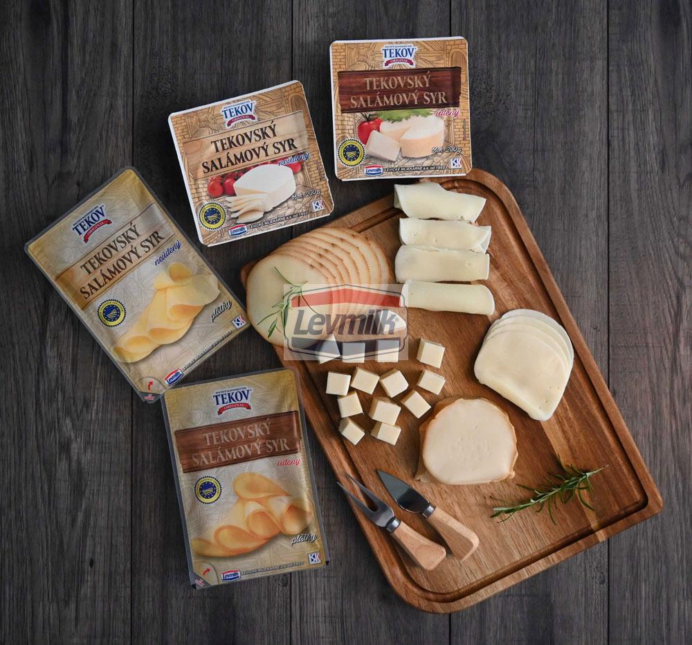 TEKOV salami cheese is the main and the most famous representative of natural cheeses. It is the only slovak natural cheese that holds the European prestigious certificate „Protected Designation of Origin“. This certificate acquired for the traditional recipe, classic way of production verified by decades, while maintaining the accuracy of manual work. It is produced in two flavors, nonsmoked and smoked, which is smoked on beech wood in a classic way.