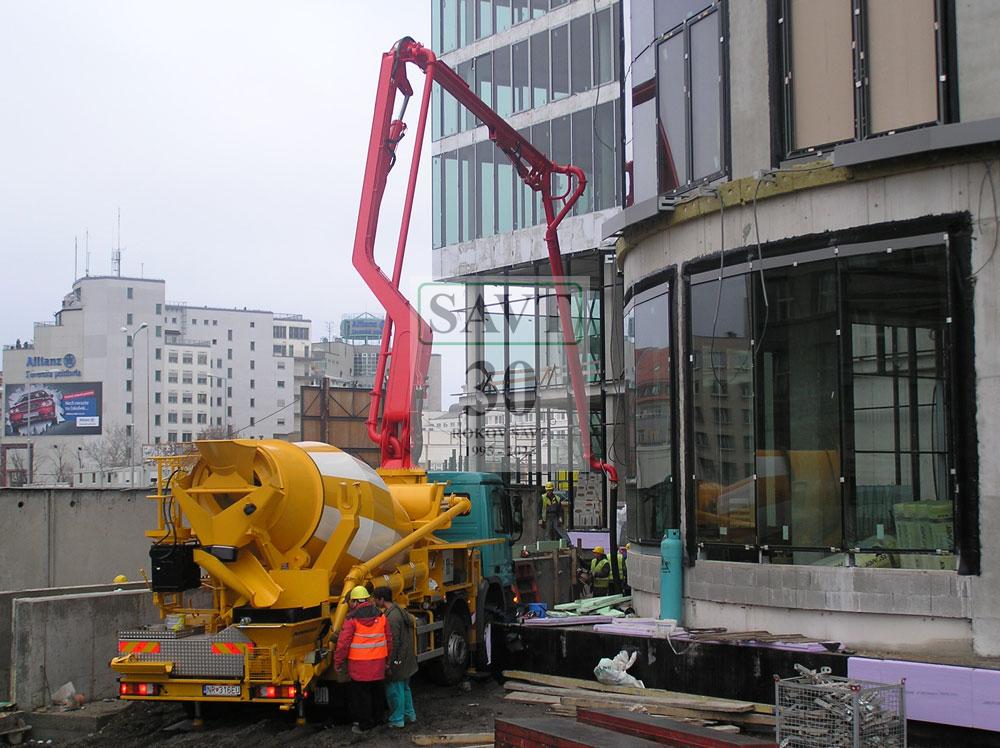 Rýchlosť výstavby sa dosahuje tým, že transportbetón, ktorý je na stavenisko dopravovaný domiešavačmi, je ďalej na stavbe dopravovaný čerpadlami na betón, ktoré výrazne znižujú prácnosť pri doprave betónu na stavbe. Dodávka transportbetónu na stavbu presne v požadovaný čas zabraňuje prestojom na stavbe. Výrazne sa tým zníži aj potrebný počet pracovníkov pri betonáži.