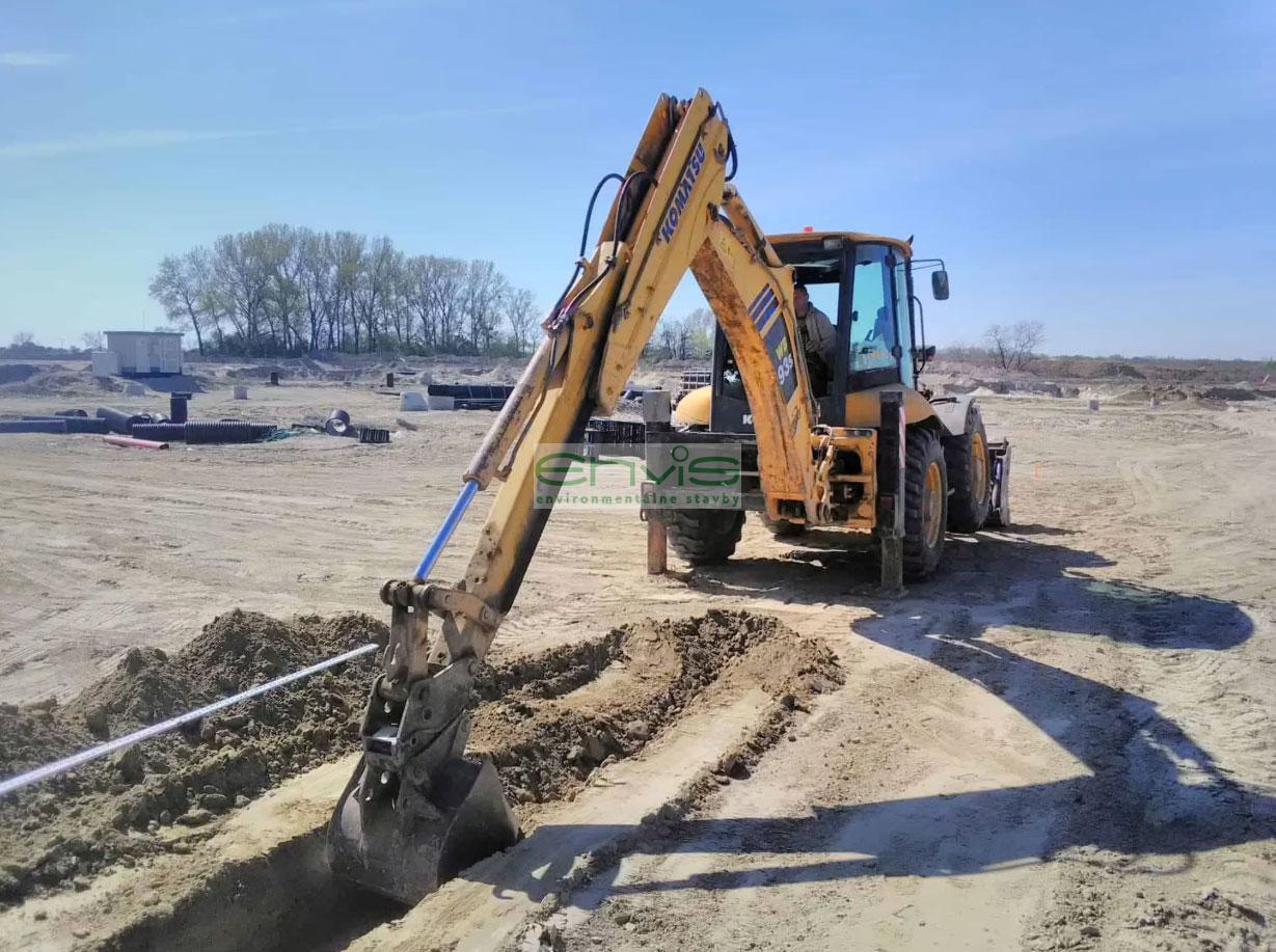 - Vodovody a kanalizácie: Výstavba vonkajších rozvodov, prípojok a prekládky existujúcich sietí.