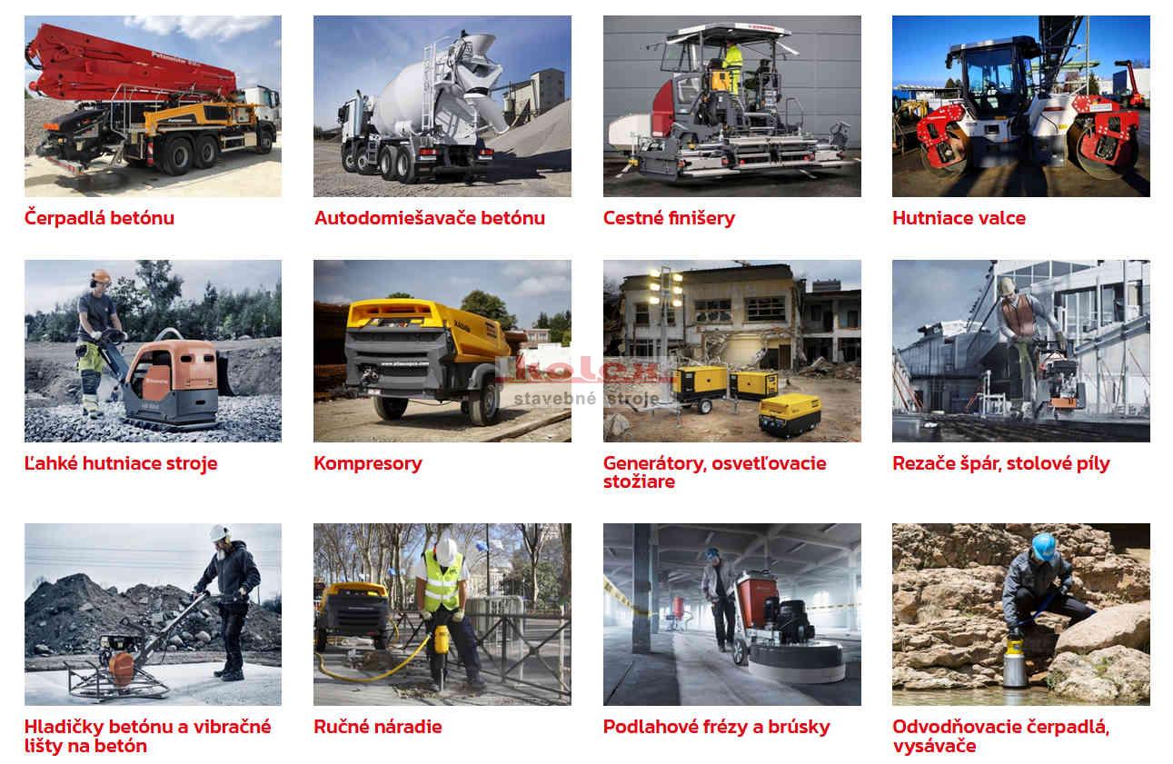 Distribútor stavebnej techniky značiek Putzmeister, Sany (čerpadlá betónu, betonárne, mobilné žeriavy), JEKKO (minižeriavy) Husqvarna Construction, Atlas Copco, Honda