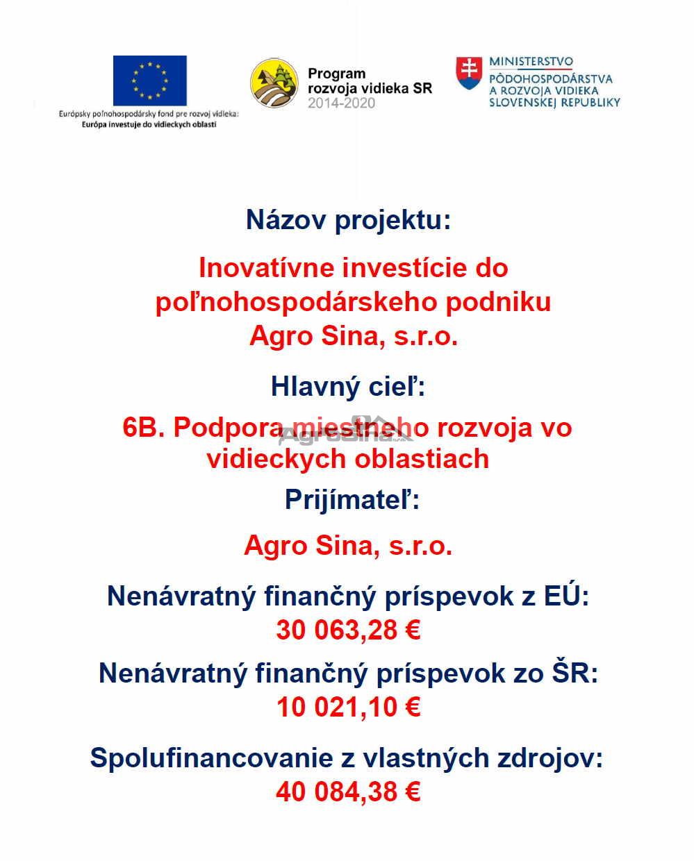 Inovatívne investície do poľnohospodárskeho podniku Agro Sina s.r.o.